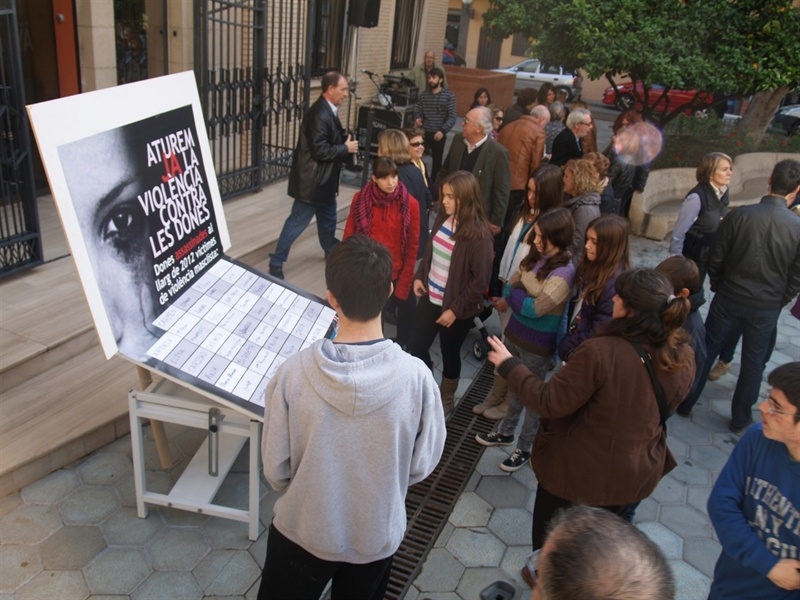 Anualment i al voltant del 25 de novembre, dia internacional contra la violència de gènere, l'Ajuntament organitza tot un seguit d'activitats per tal d'aportar el seu esforç en l'eradicació d'aquesta lacra social que suposa la violència contra les dones.Aquestes imatgses corresponen al divendres 23 de Novembre, a les 10'30 hores, a la porta de l'Ajuntament de Picanya on tingué lloc la tradicional concentració i acte homenatge a les víctimes de la violència de gènere amb la lectura dels noms de les dones assassinades durant 2012.